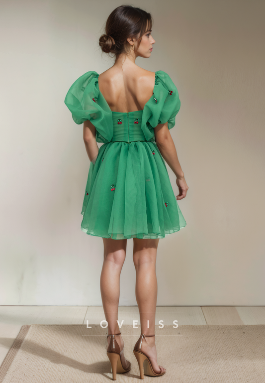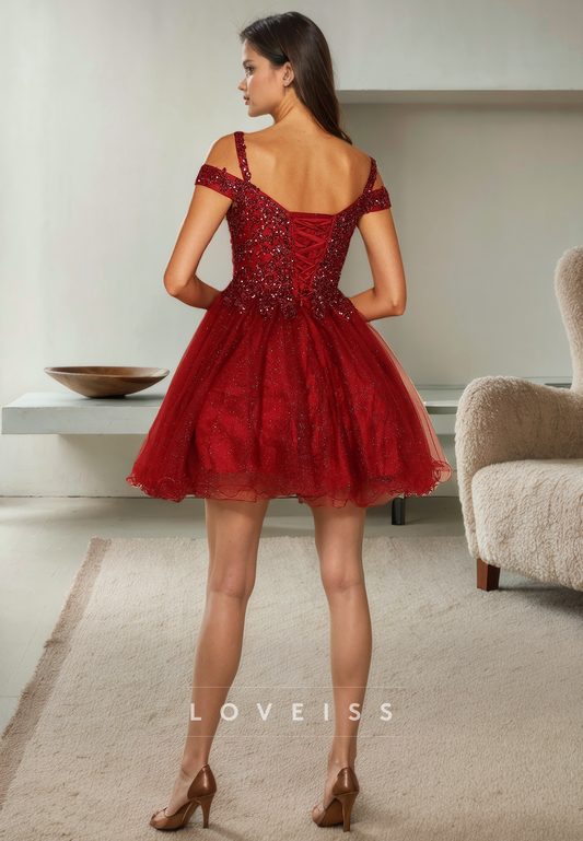 A Line Sweetheart Short Sleeves Beads Short Homecoming Dress Party Dress