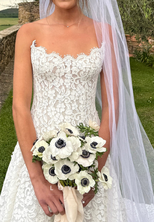 A Line Sweetheart Lace Appliques Romantic Wedding Dress