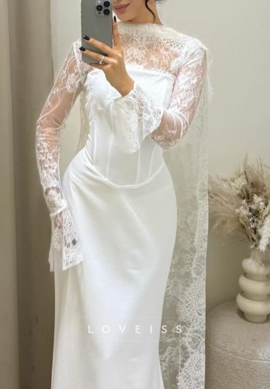 High Neck Long Sleeves Lace Appliques Sheath Wedding Dress