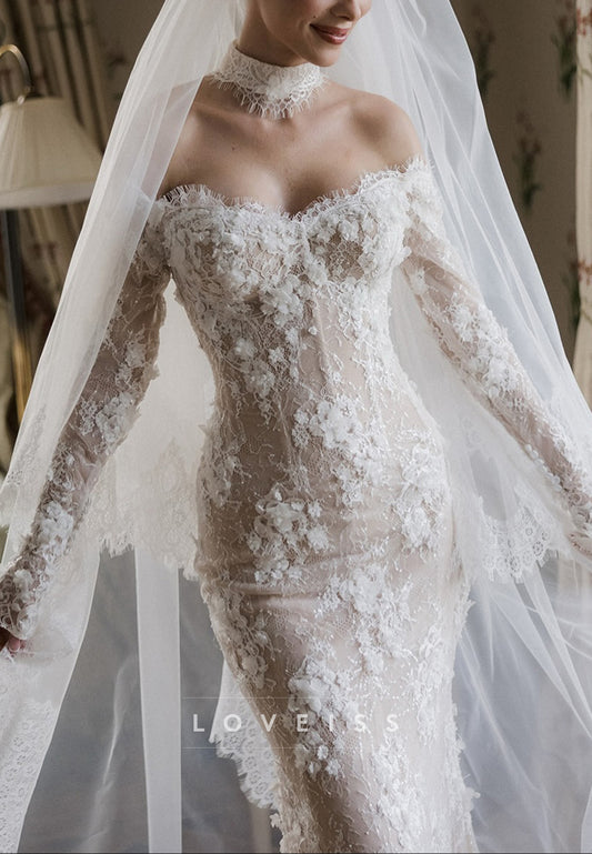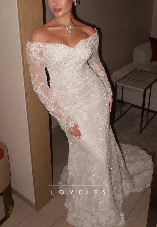 Off-Shoulder Long Sleeves Lace Appliques Mermaid Wedding Dress