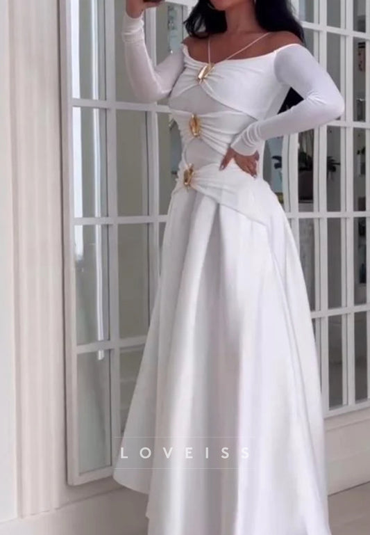 Off-Shoulder Long Sleeves Satin A-Line Wedding Dress
