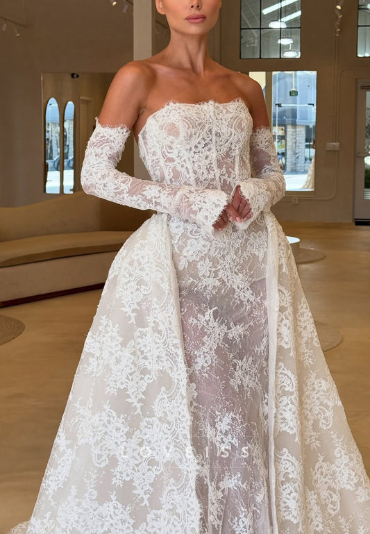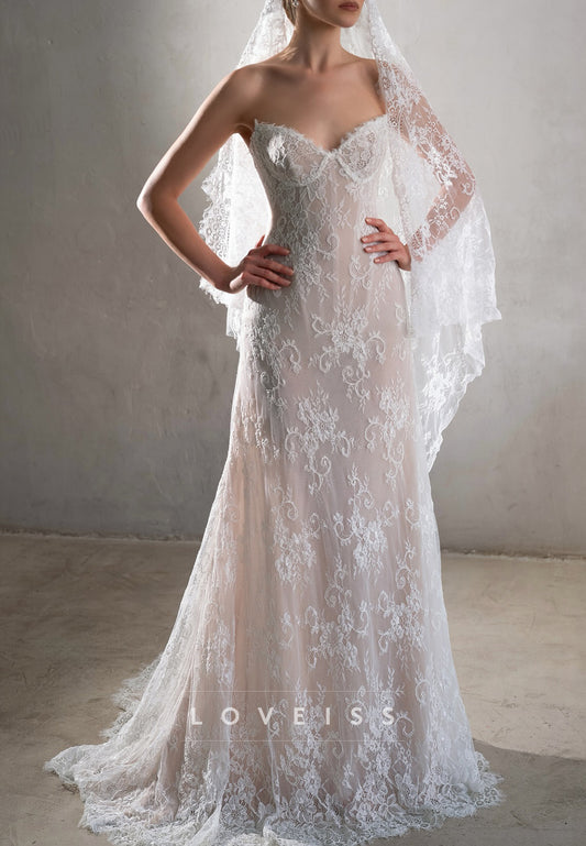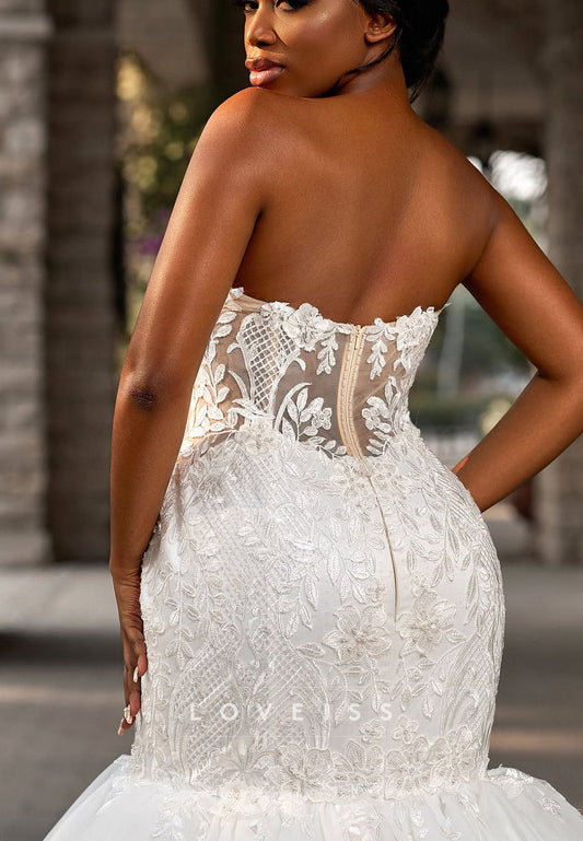 Sweetheart Strapless Lace Appliques Mermaid Wedding Dress