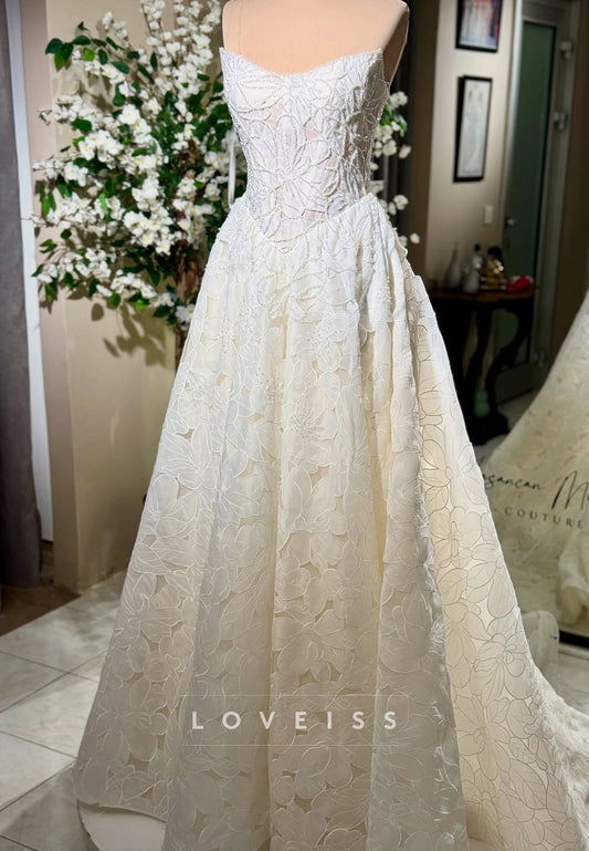 Sweetheart Floral Appliques Sleeveless A-Line Wedding Dress