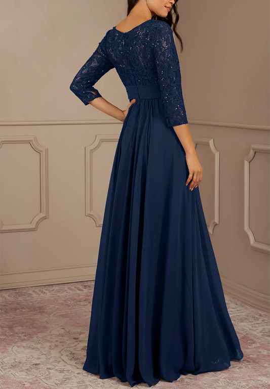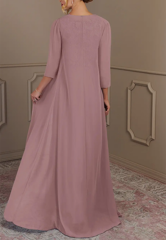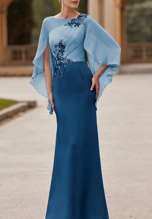 Scoop Half Sleeves Chiffon Appliques Long Mother of Bride Dress