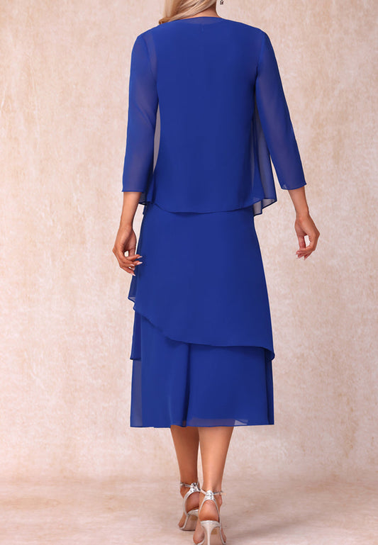 Scoop Half Sleeves Chiffon Sheath Mother of Bride Dress Cocktail Dress