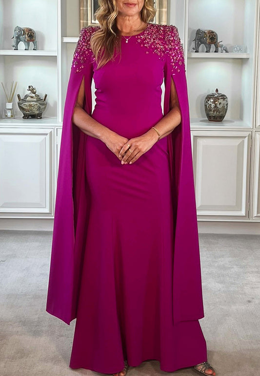 Scoop Long Sleeves Beaded Sleek Mermaid Mother of Bride Dress
