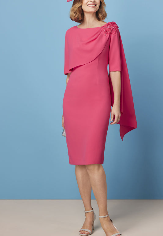 Scoop Half Sleeves Sleek Sheath Knee-Length Mother of Bride Dress