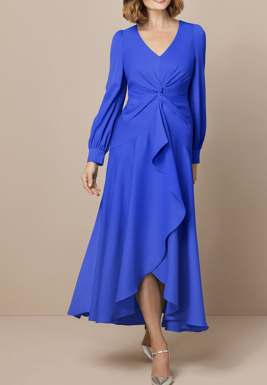 V-Neck Long Sleeves Ruffled Chiffon A-Line Mother of Bride Dress Cocktail Dress
