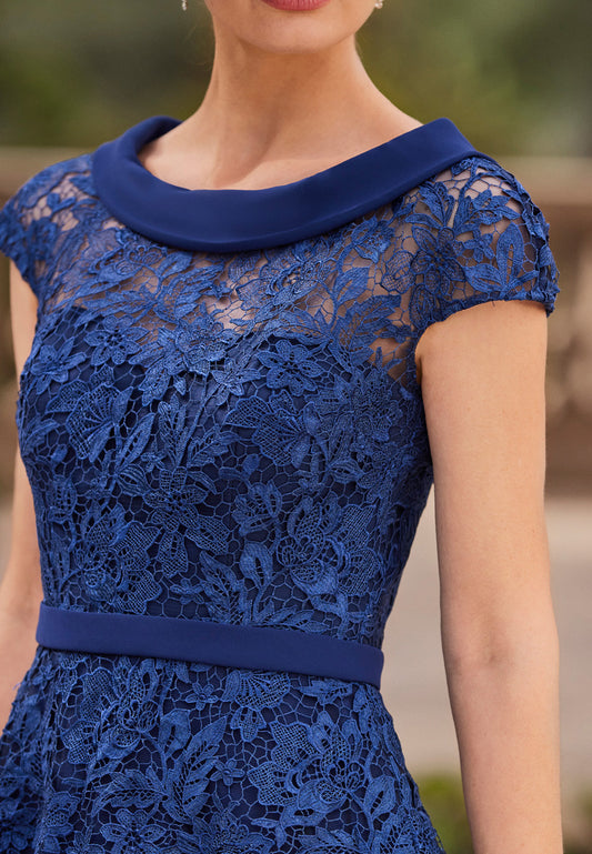 Sheath Bateau Short Sleeves Lace Long Cocktail Dress Elegant Mother of the Bride Dress