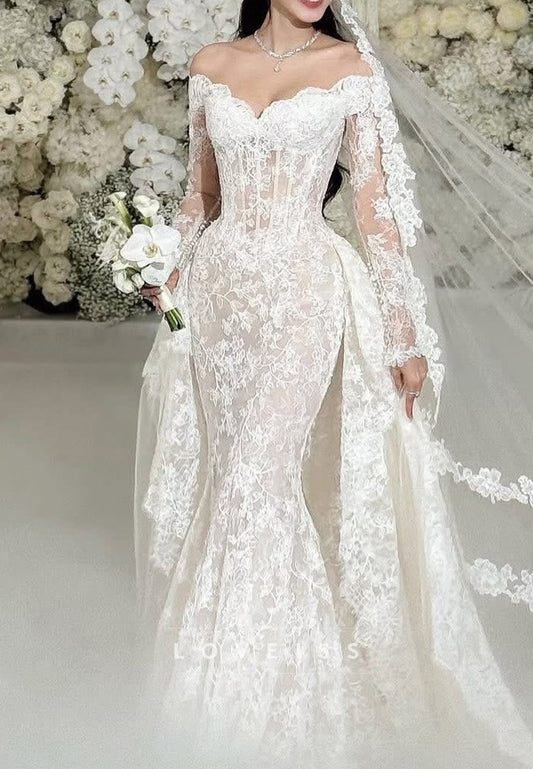 Sweetheart Lace Appliques Mermaid Long Sleeves Wedding Dress