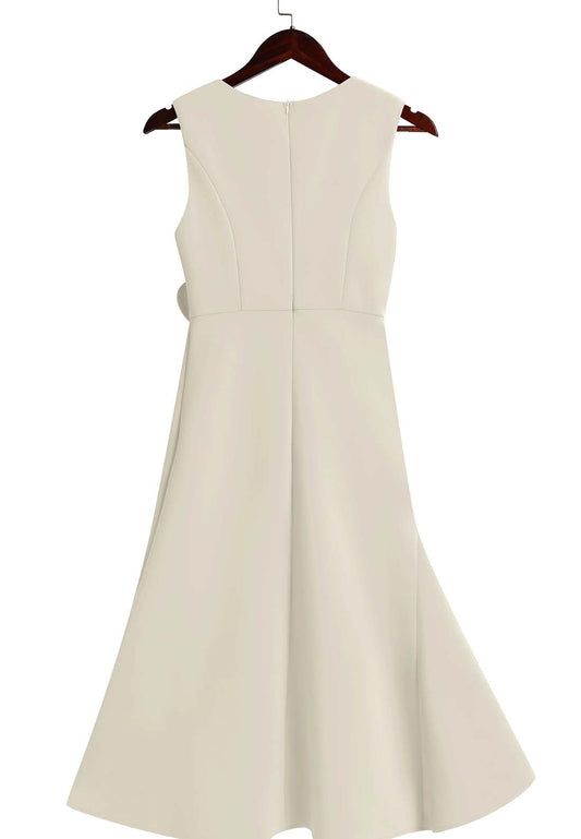 Apricot White Sleeveless Midi Elegant A-line Dress with Waist Twist for Day-to-Night