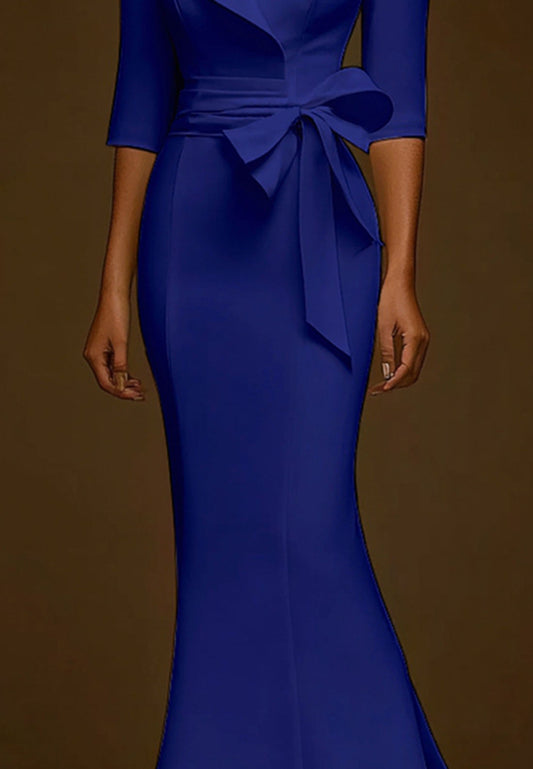 Blue Cap Sleeve Bow Satin A-Line Maxi Dress