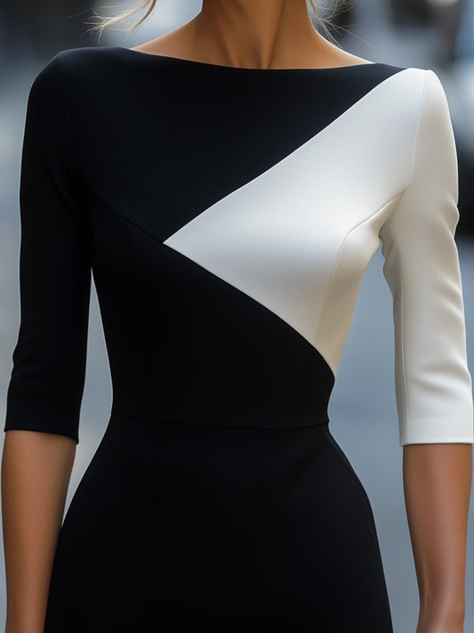 V-Neck Half Sleeves Fitted Mermaid Midi Work Dress