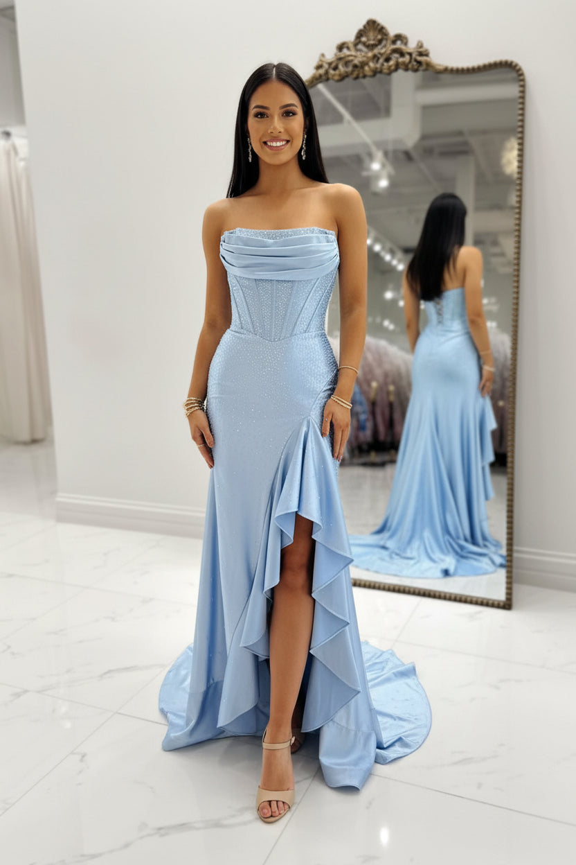 Straight Across Ruffles Side Slit Mermaid Prom Dress
