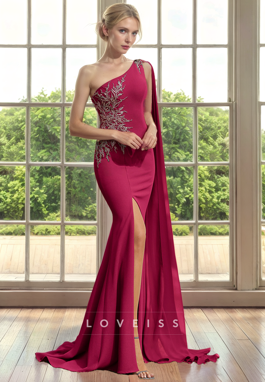 Asymmetrical Pleated Side Slit Sheath Evening Dress