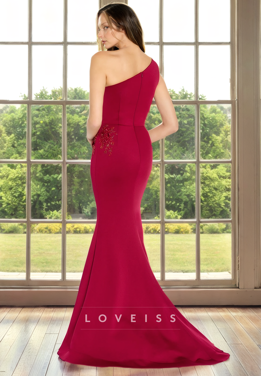 Asymmetrical Sleeveless Appliques Mermaid Side Slit Mother of Bride Dress Cocktail Dress
