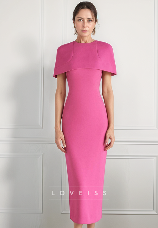 Bateau Short Sleeves Floral Appliques Sheath Mother of Bride Dress