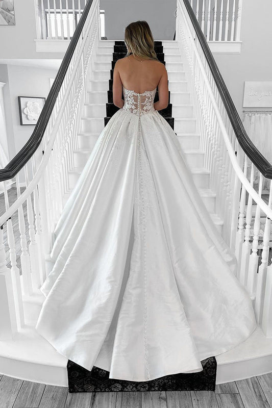 White Sleeveless Strapless Sweetheart A Line Long Wedding Dress