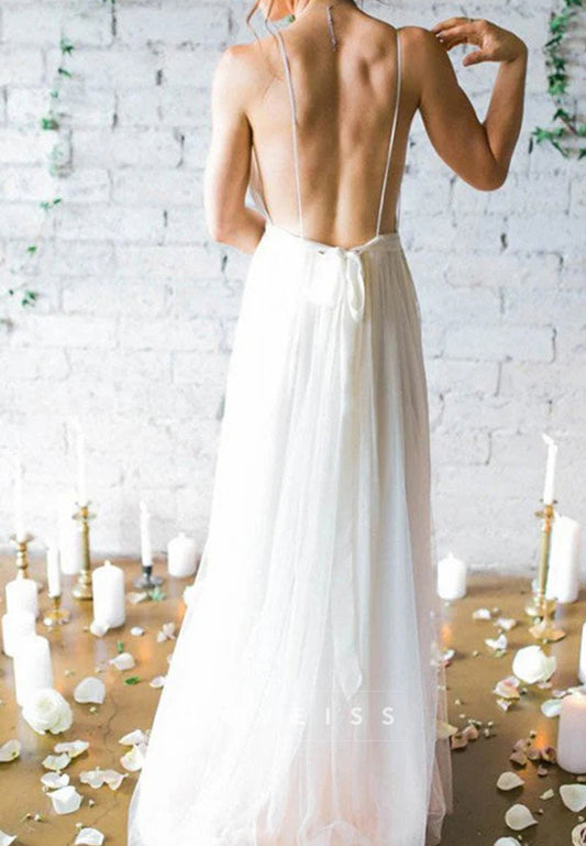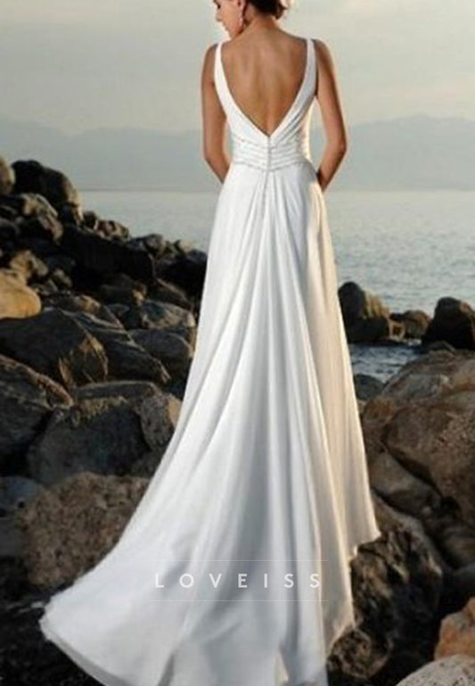 V-Neck Straps Empire Waist A-Line Beach Wedding Dress
