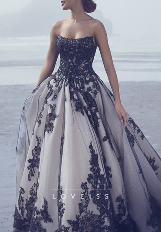 Sweetheart Sparkly Ball Gown Appliques Black Wedding Dress