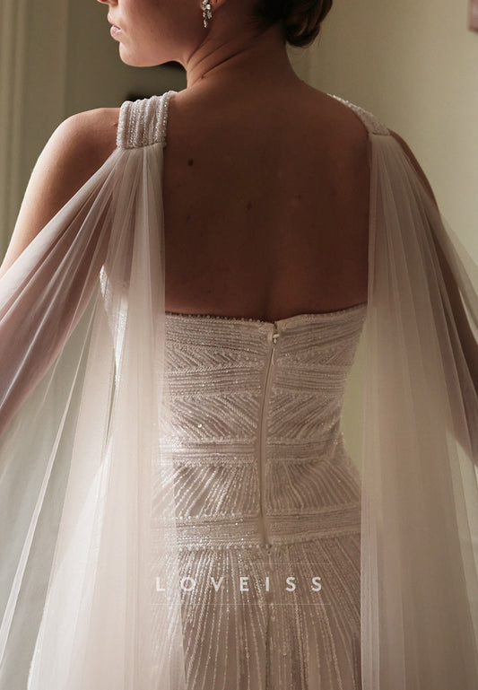 Straight Across Beaded Embroidery Tulle A-Line Weddding Dress