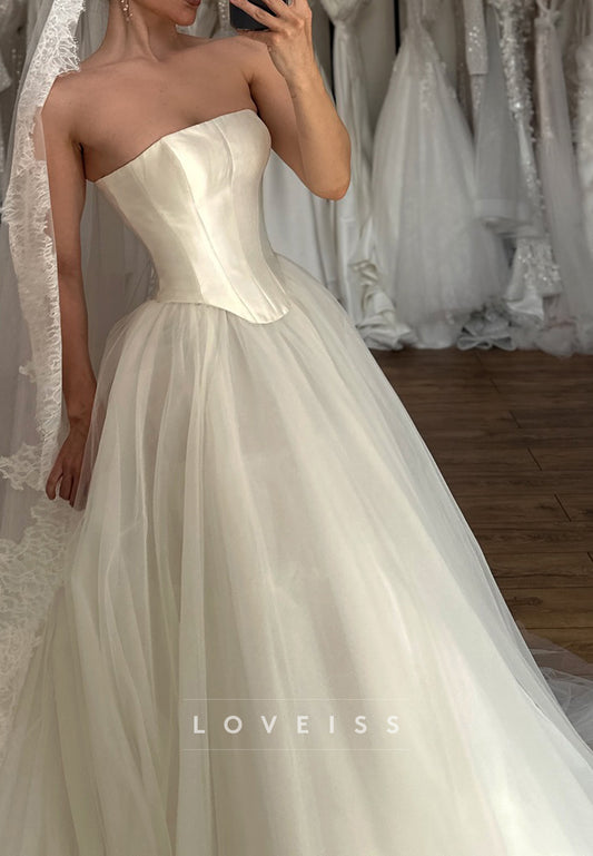 Straight Across Sleeveless Corset Ball Gown Wedding Dress