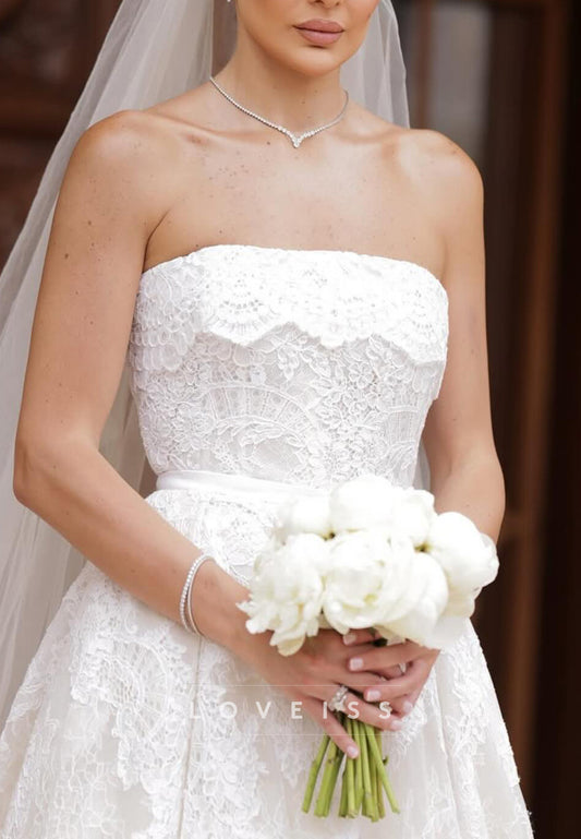 Straight Across Sleeveless Lace Appliques A-Line Wedding Dress