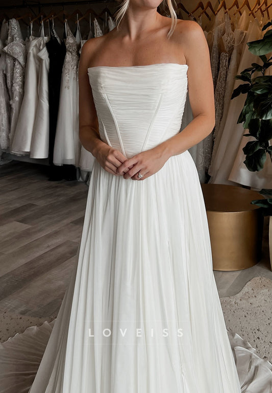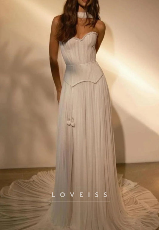 Sweetheart Strapless Pleated A-Line Beach Wedding Dress