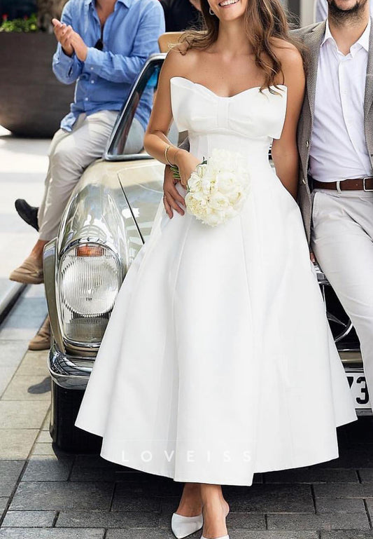 Sweetheart Bow Sleek Satin Midi A-Line Wedding Dress