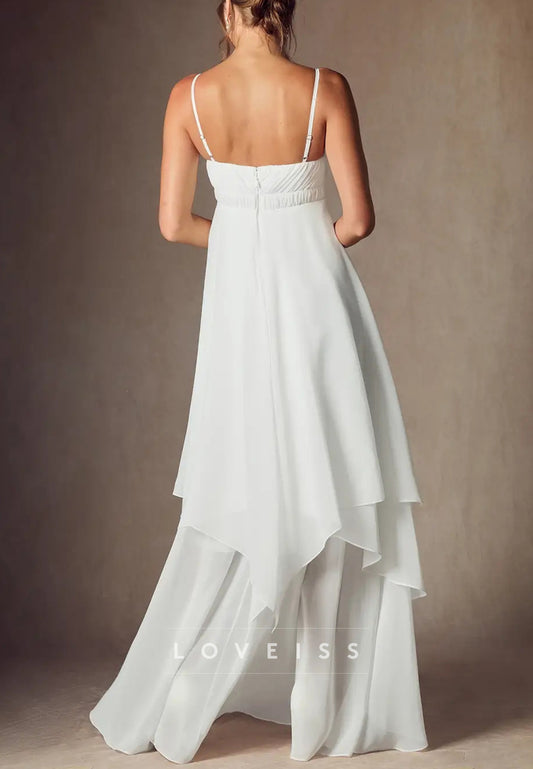 Sweetheart Spaghetti Straps Empire Waist Tiered A-Line Boho Wedding Dress
