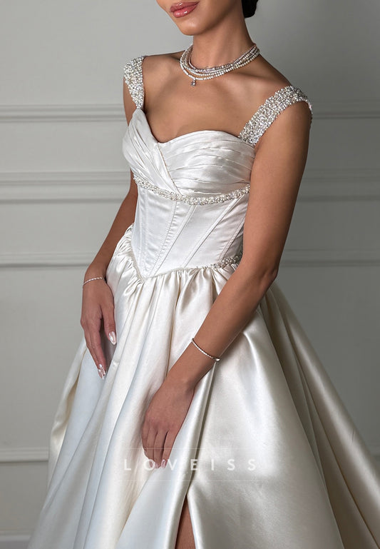 Sweetheart Straps Beaded Satin A-Line Wedding Dress
