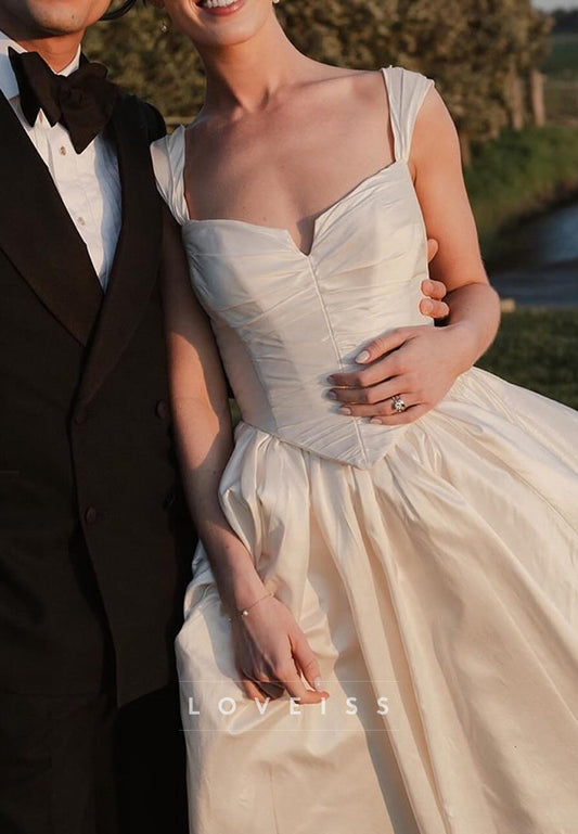 Sweetheart Straps Pleated Satin A-Line Wedding Dress