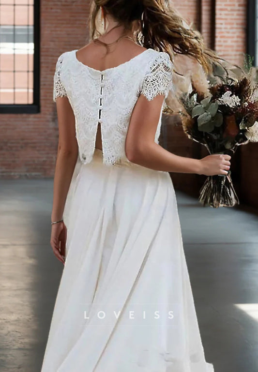 Two Pieces A-Line Princess Scoop Neck Short Sleeves Wedding Dress with Appliques