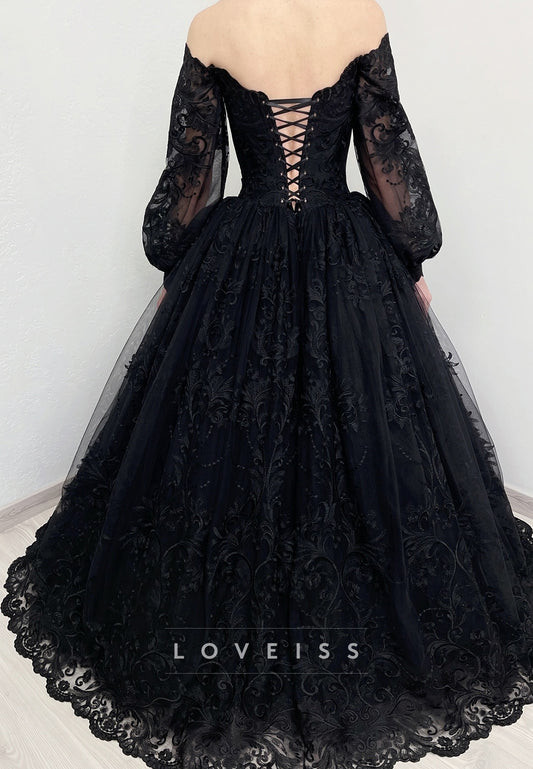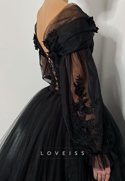 Off-Shoulder Appliques Ball Gown Black Wedding Dress