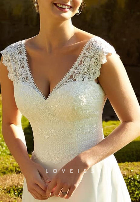 V-Neck Sleeveless Lace Appliques Chiffon A-Line Wedding Dress