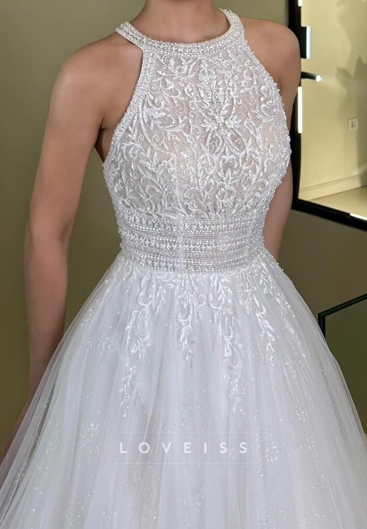 Halter Tulle Appliques Ball Gown Sleeveless Wedding Dress