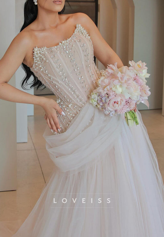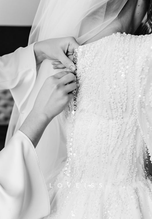 Off-Shoulder Beaded Tulle Corset Ball Gown Wedding Dress