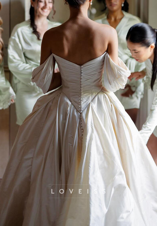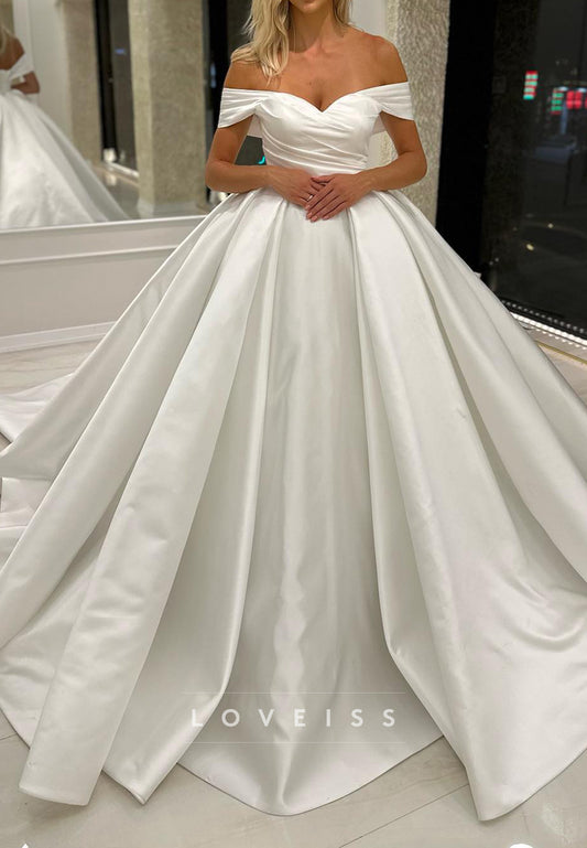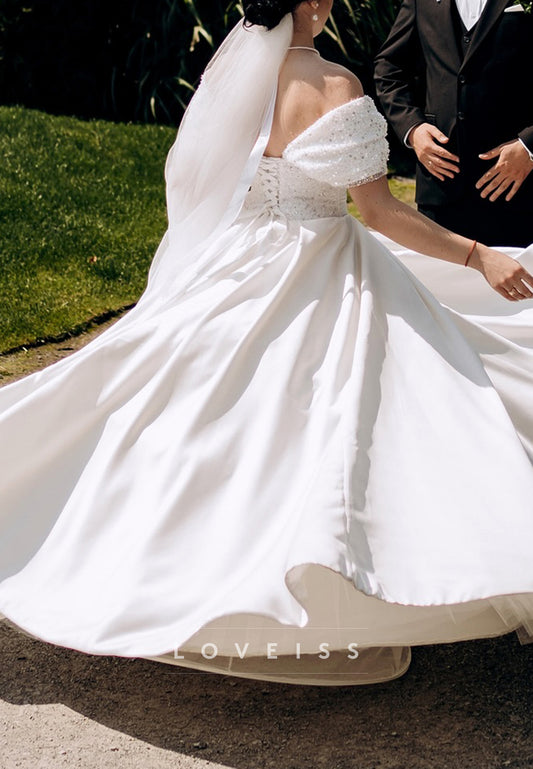 Off-Shoulder Satin Corset Sleeveless A-Line Wedding Dress