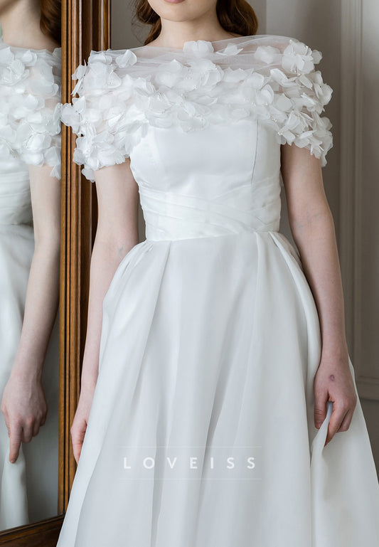 Straight Across Floral Embellished A-Line Short Wedding Dress