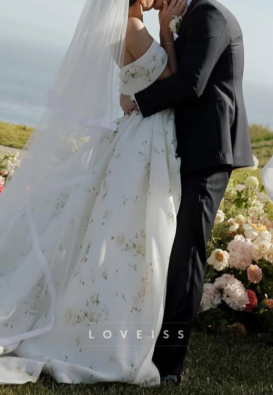 Off-Shoulder Floral Printed A-Line Wedding Dress