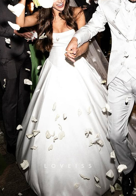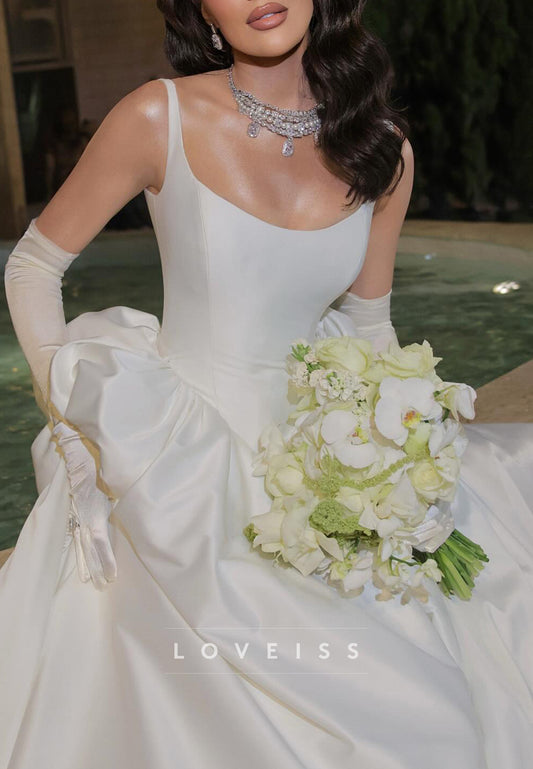 Scoop Straps Sleek Corset Satin A-Line Simple Wedding Dress