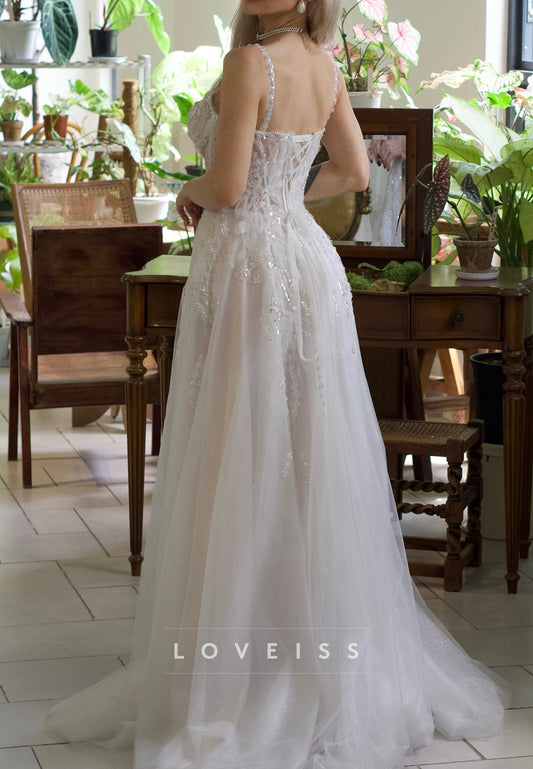 Sweetheart Spaghetti Straps Appliques A-Line Wedding Dress