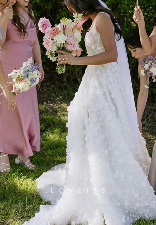 Square Straps Floral Embellished A-Line Wedding Dress