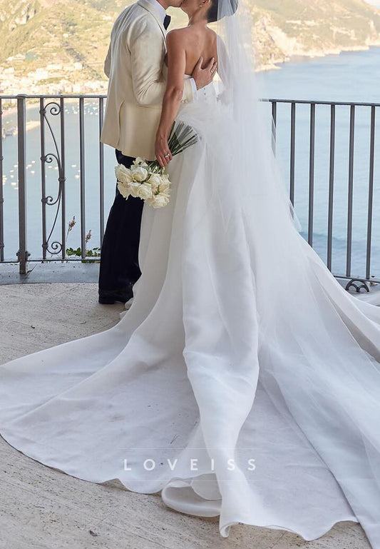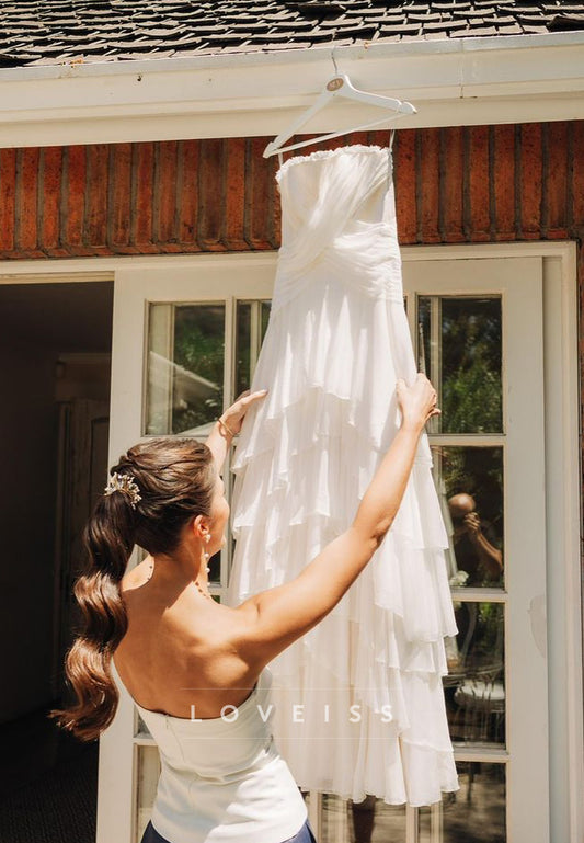Straight Across Pleated Tiered A-Line Flowy Wedding Dress