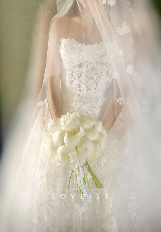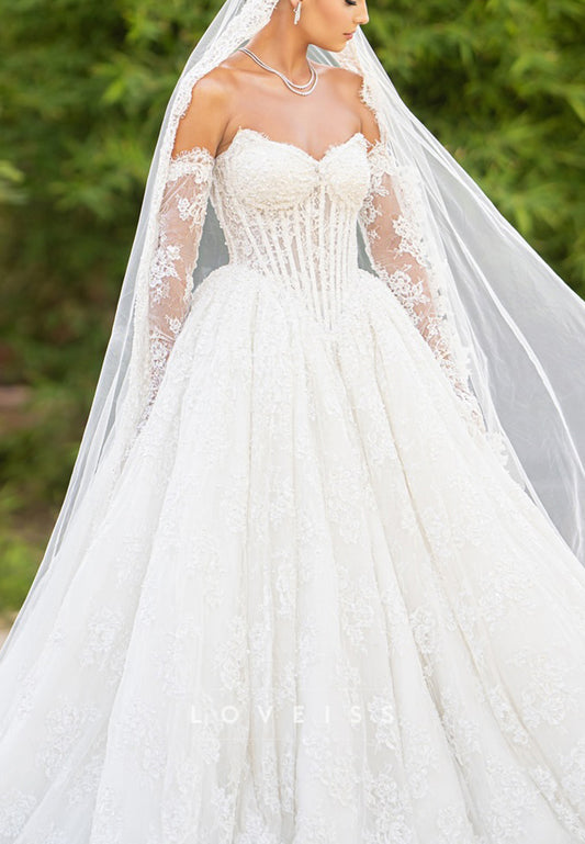 Sweetheart Strapless Lace Appliques Ball Gown Wedding Dress