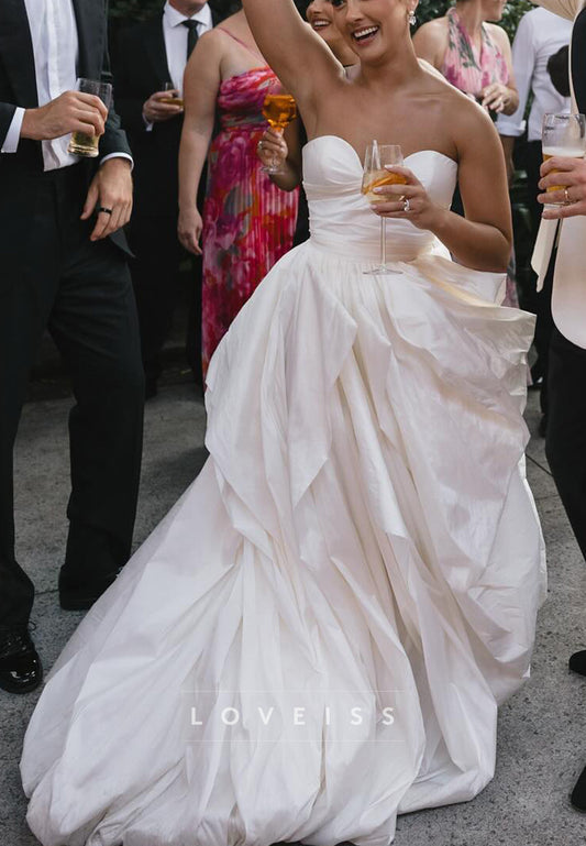 Sweetheart Strapless Pleated Summer A-Line Wedding Dress
