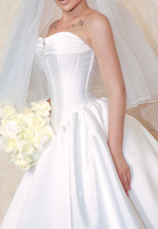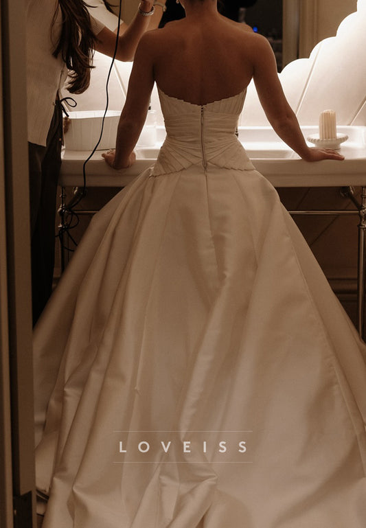 Sweetheart Strapless Satin Pleated Classic Wedding Dress