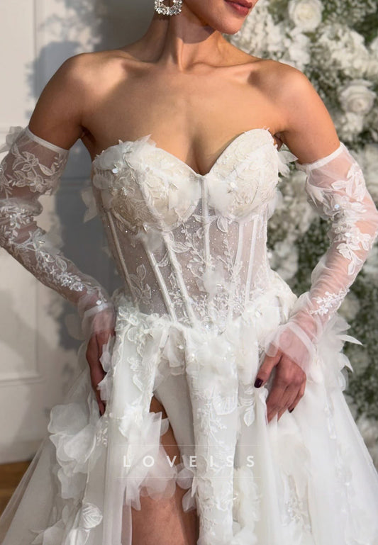 Sweetheart Sleeveless Tulle 3D Floral A-Line Wedding Dress