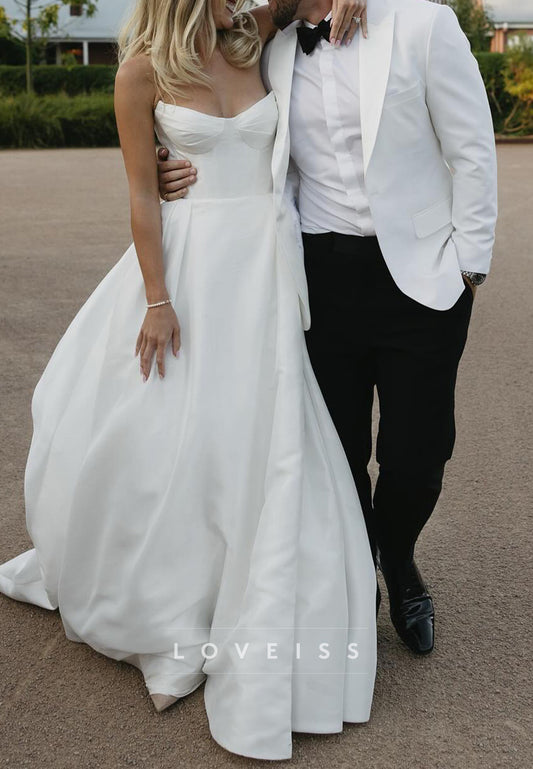 Sweetheart Satin Corset Satin Sleek A-Line Wedding Dress