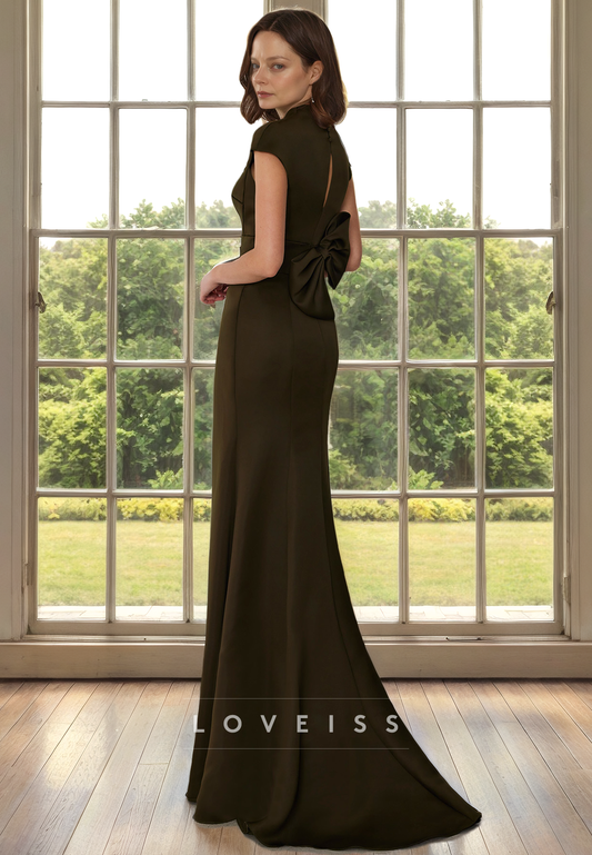 V-Neck Cap Sleeves Sheath Mother of Bride Dress
